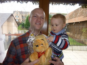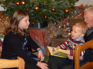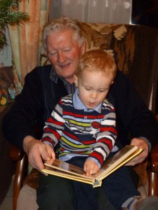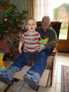 Photo loufoque …. on dirait que Célian et Papy nous poussent la chansonnette !