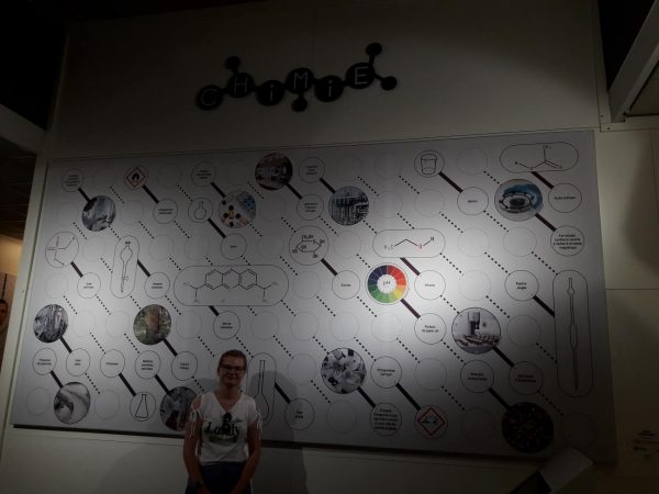 Papa se moque de Laura : Palais de la découverte, Laura devant le mur de chimie !
