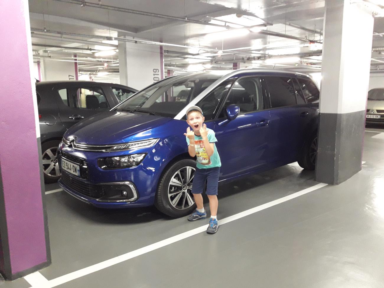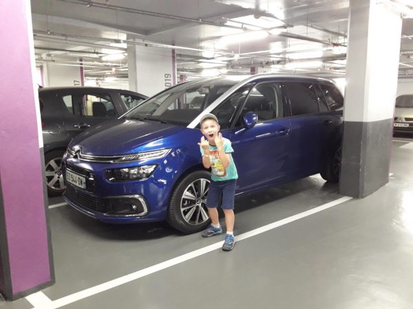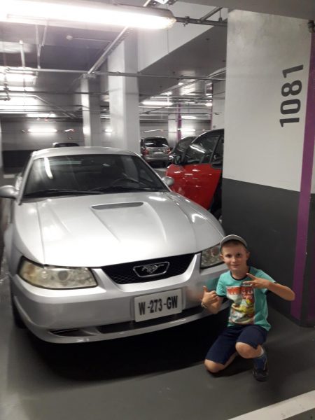 Dans les parkings , Célian visite les belles voitures !