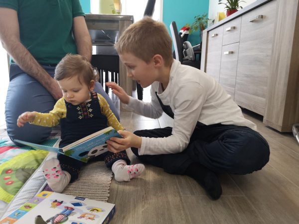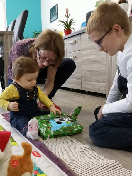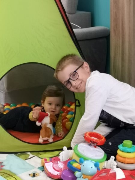 Célian est aux petits soins …et heureux de découvrir de nouveaux jeux !