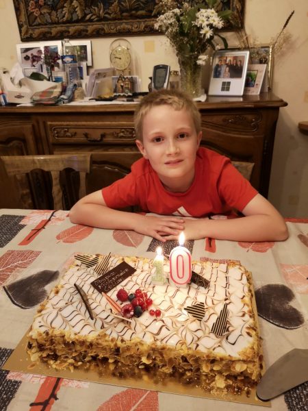 Enfin, Célian peut partager son gâteau d’anniversaire avec les cousines !