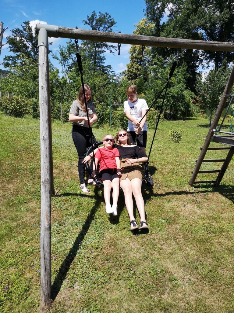 Célian et Laura ne peuvent s’empêcher de tester la chariotte de Papy !